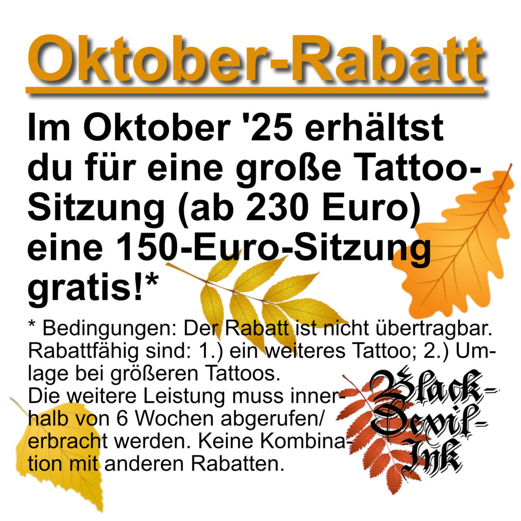 Kostenlos: Getränke, Tattoo-Pflegeprodukt, Beratung/Entwurf, evt. erforderliches Nachstechen